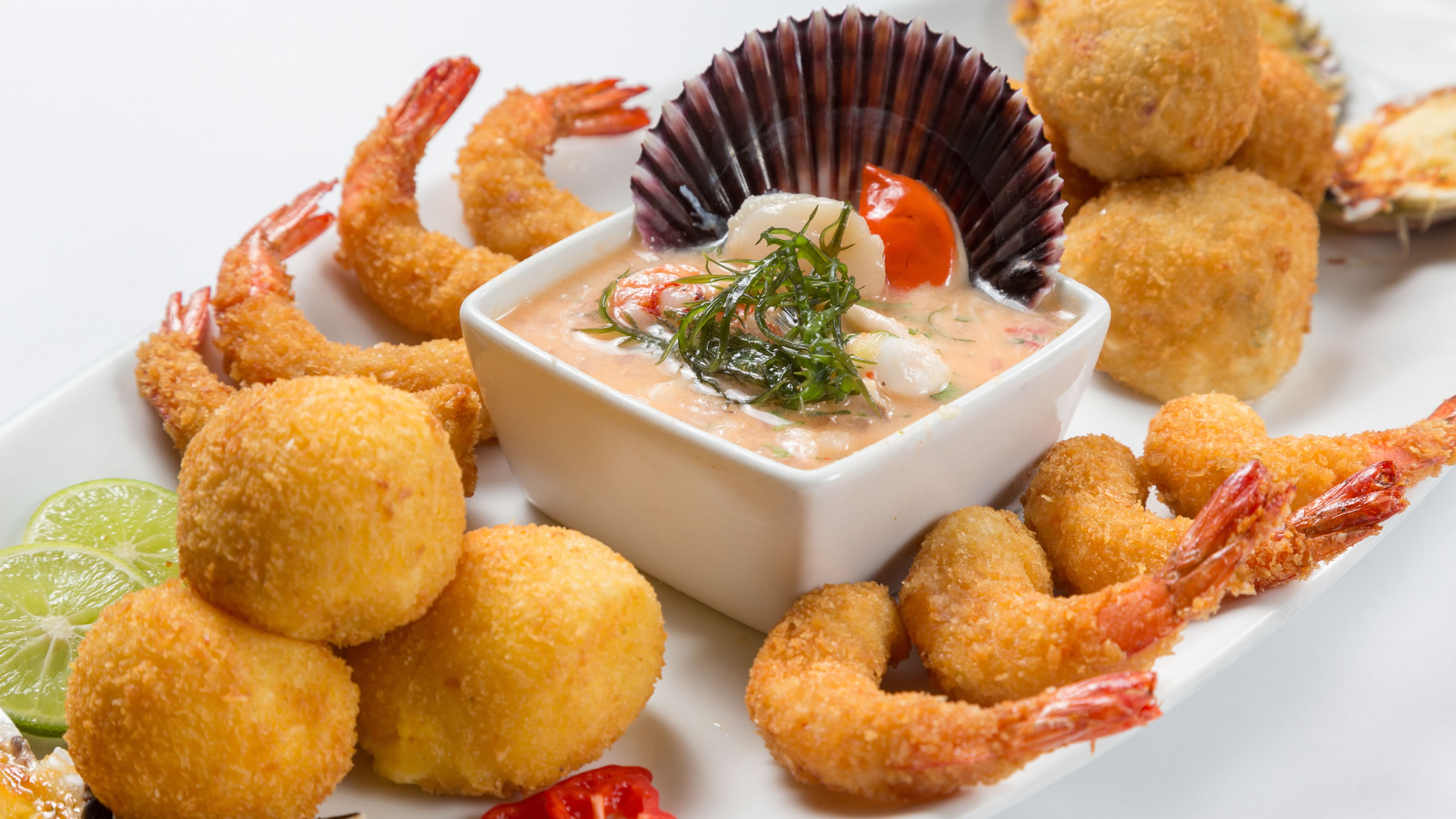 Un aperitivo delicioso con mariscos y productos del mar preparados al estilo único de la cocina peruana.