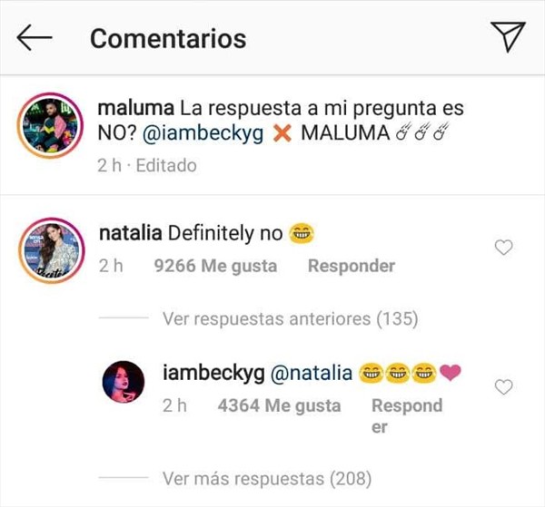 Pese al apoyo que generó esta posible colaboración entre los dos artistas de música urbana, lo que se robó la atención fue el comentario de Natalia, la novia de Maluma.