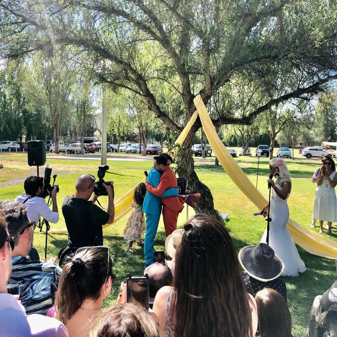 Y así fue, por estos días César y su novio, Diego, celebraron su unión en un campo recreativo en Batuco. La ceremonia incluyó la canción "Sacar la voz" de Anita Tijoux y Jorge Drexler. Además plantaron un arbusto para simbolizar su "nueva vida" juntos.