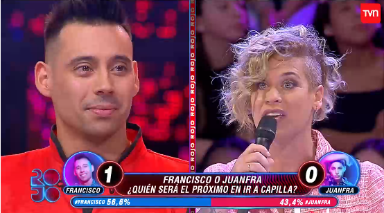 El primer duelo se conforma por Francisco Solar y Juanfra Matamala quien este último será reemplazado por su amiga Chantal Gayoso. Apoya a tu participante que más te gustó con #Juanfra o #Francisco💃🏻🕺🏻🎵🎼🎵‼️➡️ #RojoSemanaDeDuelos pic.twitter.com/NH6X3gNAjg