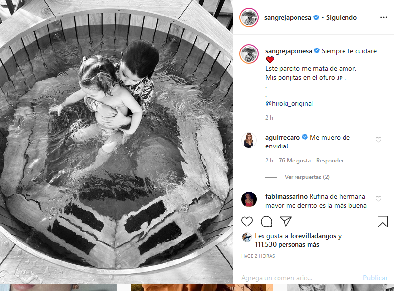 "Siempre te cuidaré ❤️Este parcito me mata de amor.Mis ponjitas en el ofuro", escribió junto a la publicación, que ya tiene más de 111 mil likes.