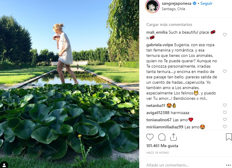 En las historias de Instagram se puede escuchar a la argentina cantando, en ellos se le ve tarareando mientras se acerca los caballos de la familia de Vicuña.