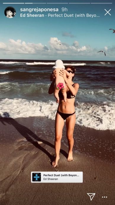 Fotos capturadas por Benjamín Vicuña y en las que la "China" luce estupenda en su bikini negro, a solo nueve meses de dar a luz a la pequeña Magnolia.
