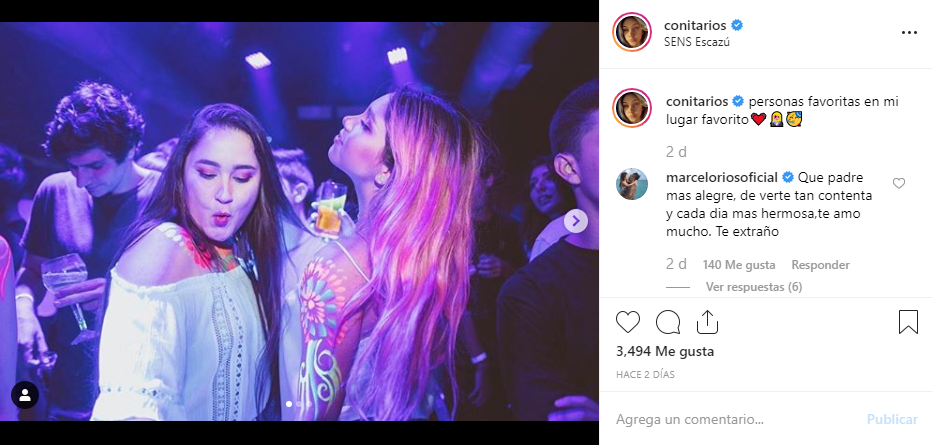 La publicación, que cuenta con más de 3 mil 'me gusta', fue comentada por Marcelo Ríos, quien escribió: “Qué padre más alegre de verte tan contenta y cada día más hermosa. Te amo mucho, te extraño”.