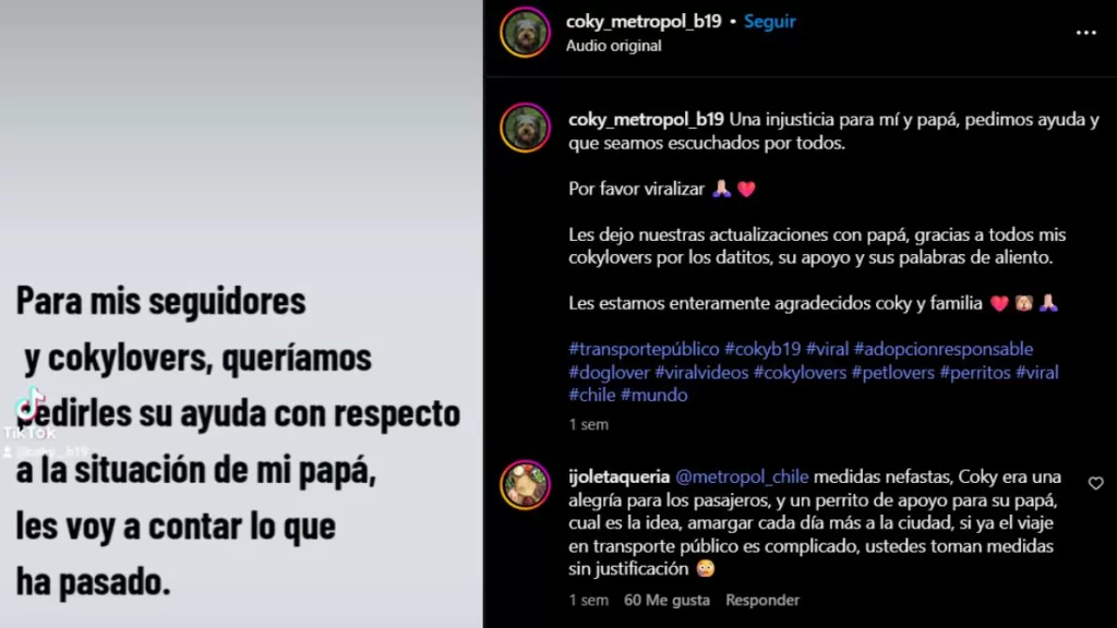 A través de la cuenta de Instagram del querido perrito, la familia del conductor denunció el suceso, afirmando que fue desvinculado por manejar con el animal, pese a que contaba con autorización.