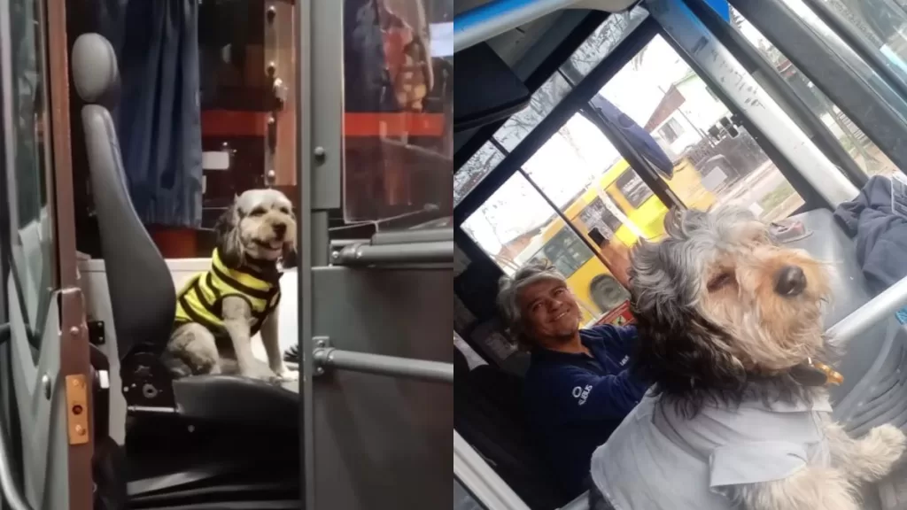 El peludito era su acompañante día tras día por alrededor de tres años en los que trabajó en el bus, calmándolo tras un episodio traumático. Siendo despedido recientemente de forma injustificada.