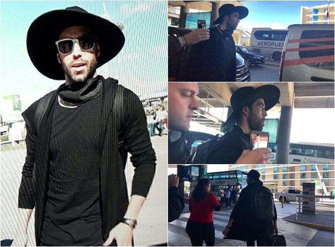 Claudio se vistió de negro completo, usó un pañuelo, lentes de sol y un sombrero, que llamó mucho la atención.
