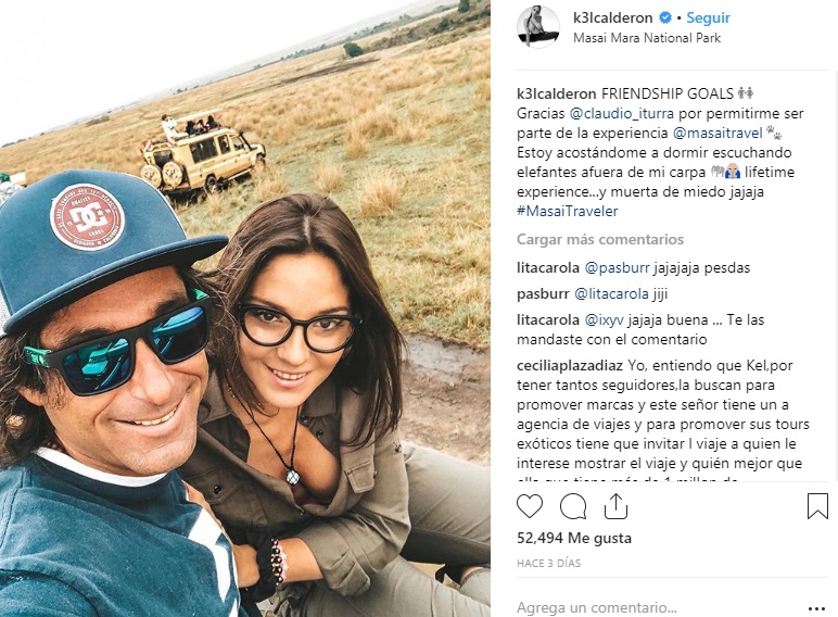 Después de este post, fue cuando Kel publicó la foto que claramento envió a Iturra a la "friend zone". "FRIENDSHIP GOALS!! gracias @claudio_iturra por permitirme ser parte de la experiencia @masaitravel Estoy acostándome a dormir escuchando elefantes afuera de mi carpa, lifetime experience...y muerta de miedo jajaja #MasaiTraveler".
