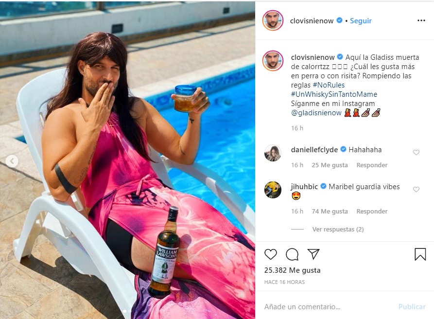"Regia"; "Qué sexy Gladis"; "Divina"; "Mijita rica"; "Estás bien bella"; "Hasta con peluca te ves sexy", son algunos de los comentarios que recibió. Es más, Clovis está tan involucrado con este nuevo personaje, que hasta le creó una cuenta de Instagram llamada @gladisnienow donde ya tiene más de 3 mil seguidores.