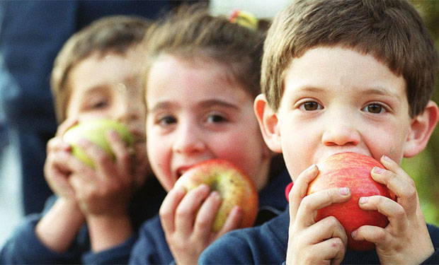 Es decir, una fruta como una manzana o un durazno, más una cajita de leche descremada y algunas verduras trozadas es una porción adecuada para repartirla en los recreos.