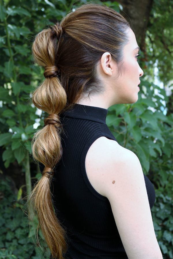 La coleta bubble es una cola caballo, pero con la diferencia de que en la propia coleta se forman 'burbujas' que le dan un toque más divertido al look.