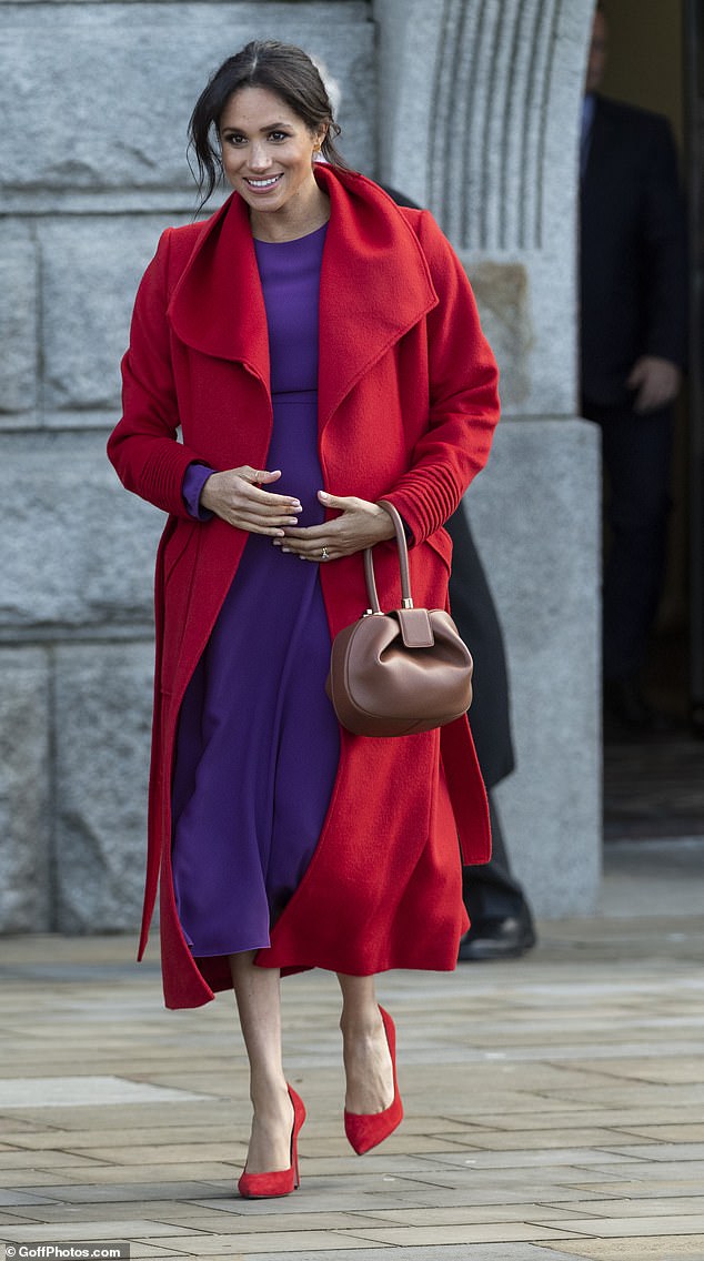 Meghan se atrevió con la tendencia de 'bloques de color', haciendo competir el rojo y el morado en el comentado atuendo con el que asistió a centenario de la muerte del poeta Wilfred Owen.