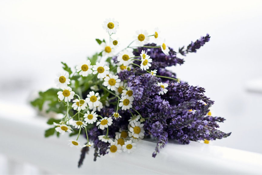 - Cuando rompa a hervir, añádele las hojas secas de lavanda, caléndula y manzanilla, y retírala del fuego.