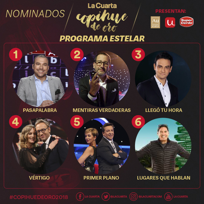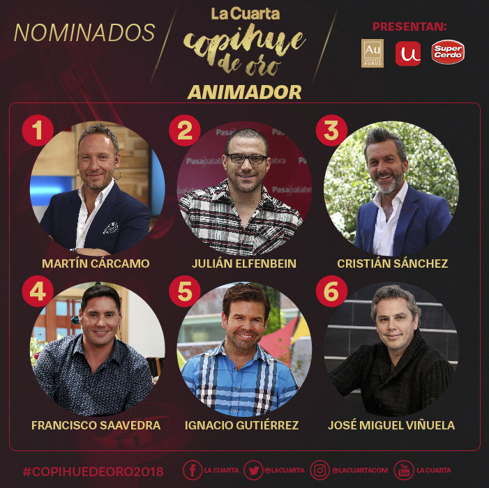Los destacados entre rostros y programas del escenario nacional, están nominados en 17 categorías para quedarse con el premio de la edición 2018 de los "Copihue de Oro".