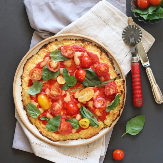 Una buena idea para hacer una comida rica, pero liviana…Es una pizza, a los niños les encanta la pizza, pero esta es con base de quinoa en vez de la tradicional masa… Arriba puede ir con salsa de tomate casera, queso de cabra, un poco de pesto, y todos los vegetales que tú quieras.