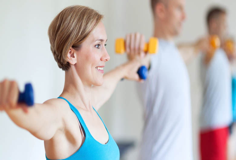- Entrenamiento de fortalecimiento: Éste contribuye a ganar masa muscular, lo que le permite a tu cuerpo quemar calorías en forma eficiente aún durante el reposo. Debido a que la masa muscular comienza a disminuir después de los 25 años, tu cuerpo no quemará grasa de la misma manera a los 40 años. El consejo es que comiences con dos sesiones de entrenamiento con pesas por semana, que duren de 30 a 45 minutos.
