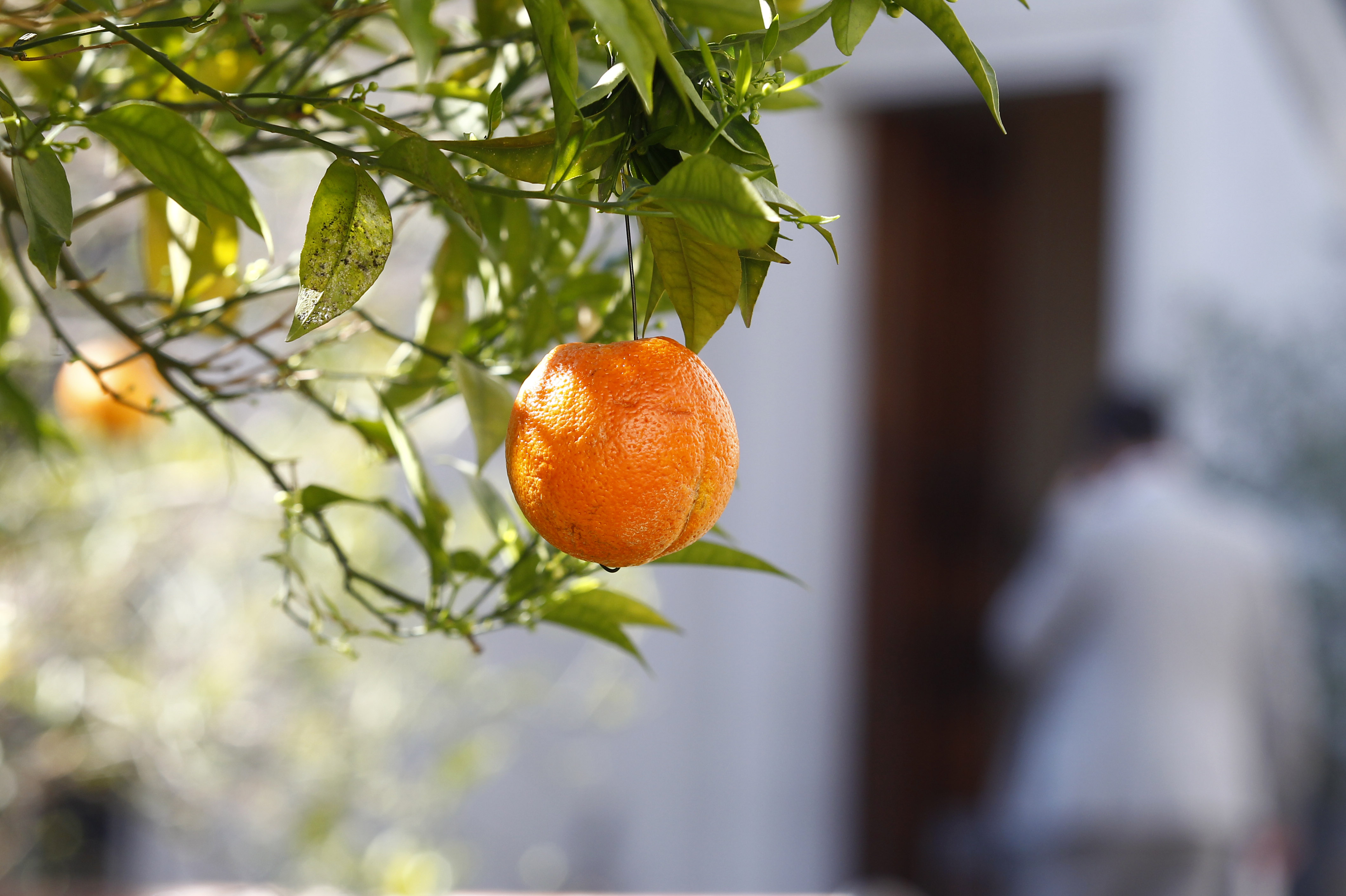 Antes de la importante jornada, un funcionario del la casa de gobierno colgó con un alambre naranjas en los árboles del famoso Patio de los naranjos, como si fuesen adornos navideños.