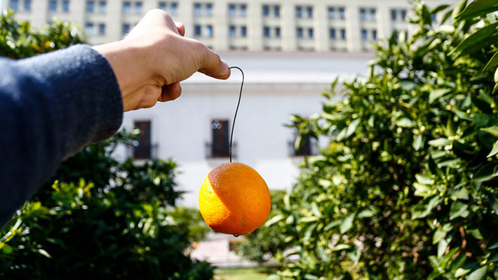 Antes de la importante jornada, un funcionario del la casa de gobierno colgó con un alambre naranjas en los árboles del famoso Patio de los naranjos, como si fuesen adornos navideños.