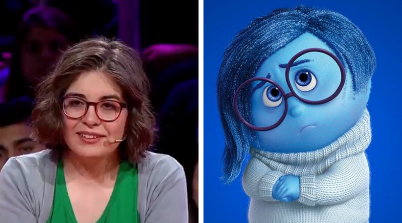 Y pese a que Sofía Salinas no logró continuar en el programa, varios usuarios de Twitter notaron un parecido con un tierno personaje de Disney. Se trata de "Tristeza" de la película "Intensamente". Los televidentes la compararon tanto por su forma de hablar, como por el corte de su pelo.