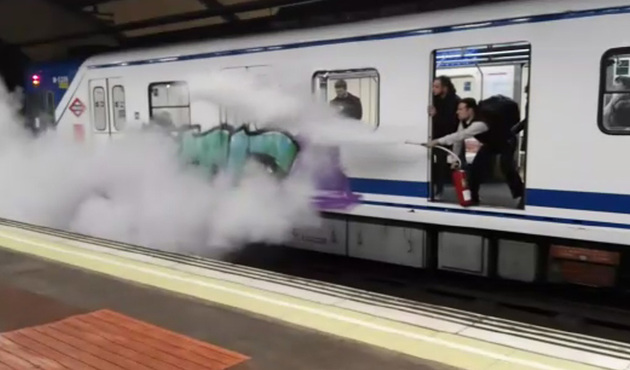 En viral se ha convertido el video que muestra la creativa, valiente y drástica acción, de un conductor de metro, para espantar a  dos grafiteros en Madrid