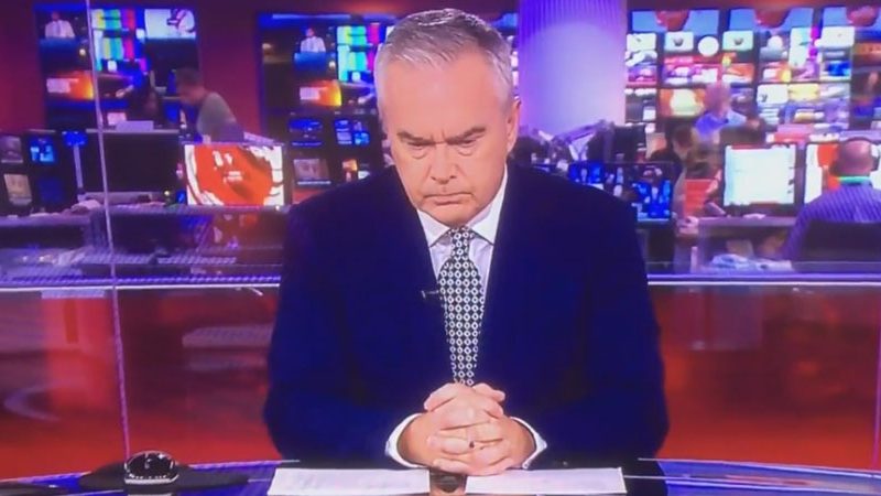 "Huw Edwards pasa dos minutos para encontrar algo positivo que decir acerca de Theresa May y su equipo y no puede encontrar nada para reanudar la emisión".
