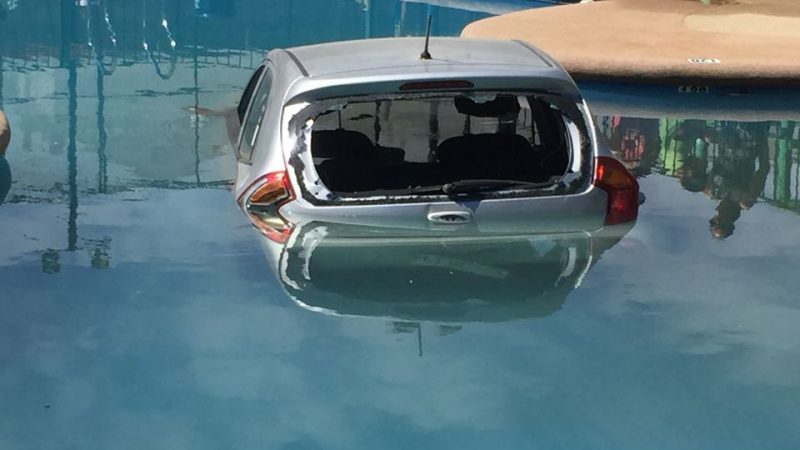 Todo comenzó cuando la mujer de 20 años, puso en marcha su vehículo automático, pero en vez de poner directa, accionó la reversa por error, retrocediendo varios metros, hasta llegar a la piscina del condominio.