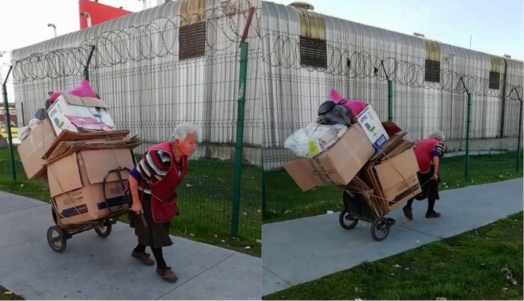 Viral se hizo un video que muestra a Alicia Flores, una mujer de 81 años que recorre las calles de Cerrillos recogiendo cartones para ganar dinero.