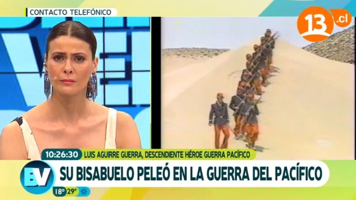Luis Aguirre Guerra, presidente del Círculo de Descendiente de los Héroes del Pacífico y bisnieto de Pedro Guerra Brito, mantuvo un contacto telefónico con el matinal de Canal 13 "Bienvenidos", en donde cómo detalles del transcurso de la Guerra del Pacífico.