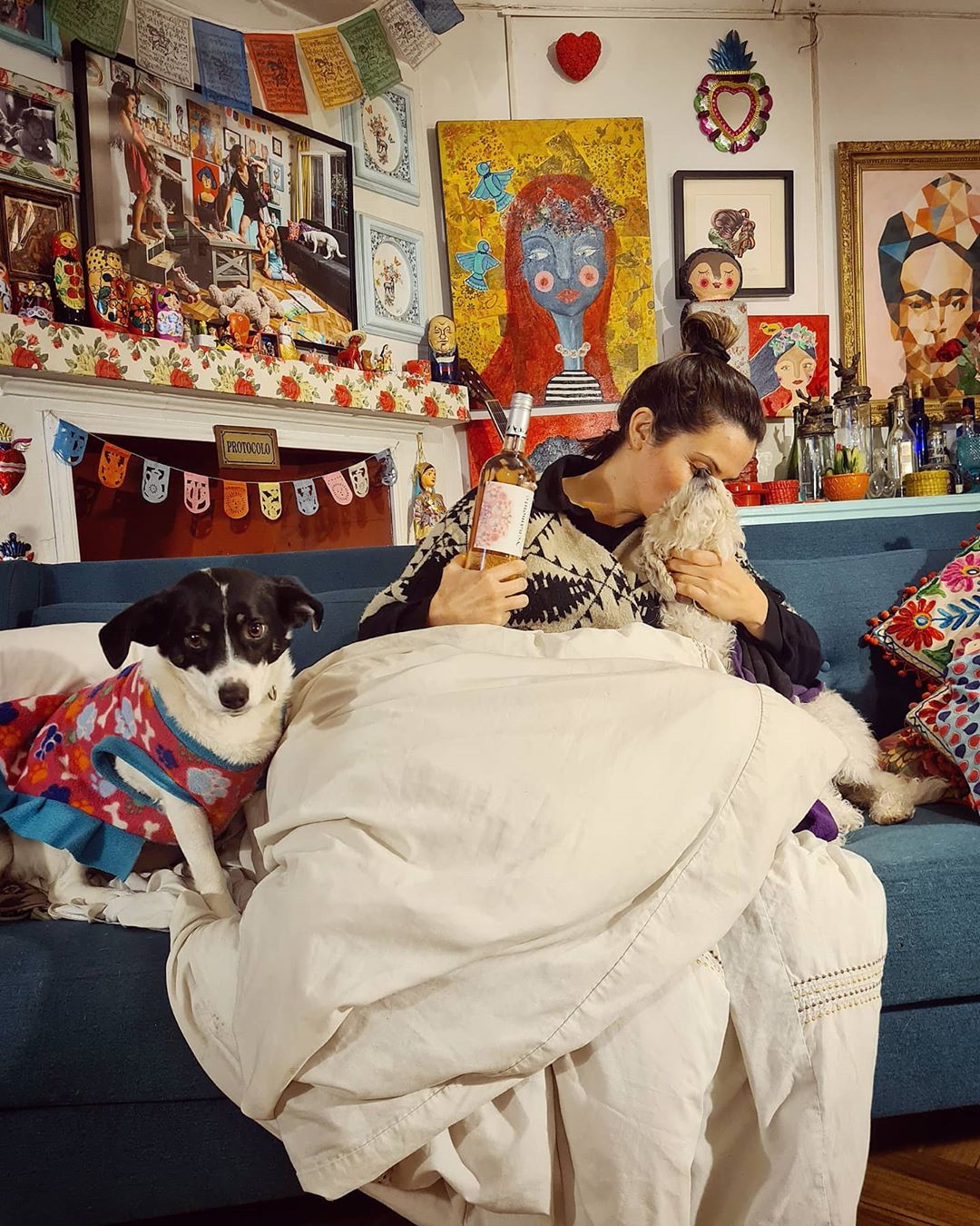 Por lo mismo, a través de su Instagram, Connie Achurra reveló que se encuentra durmiendo en el living de su casa. "Llevo 9 días durmiendo en el living a la espera que termine la reconstrucción del muro de mi casa, la #chiamaria y la #trufamaria no me abandonan así que no es muy cómodo 🐶😬🐕", fue parte de lo que escribió junto a una foto de ella en su pieza temporal.