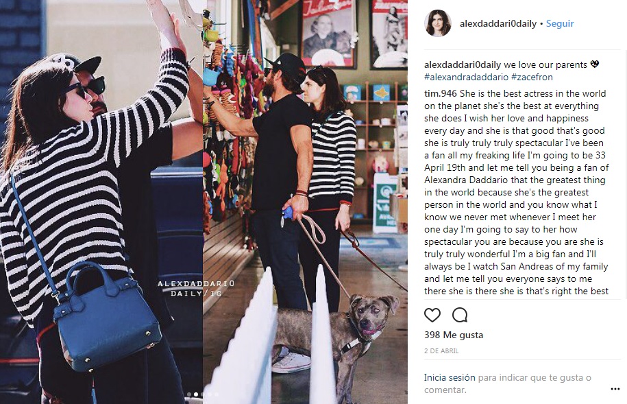 Según la revista Cosmopolitan, las nuevas fotos que podrían confirmar que Zac Efron y Alexandra Daddario están saliendo, fueron de hace unos días donde las estrellas fueron captados paseando juntos con sus mascotas y comprando accesorios para sus adorables perros.
