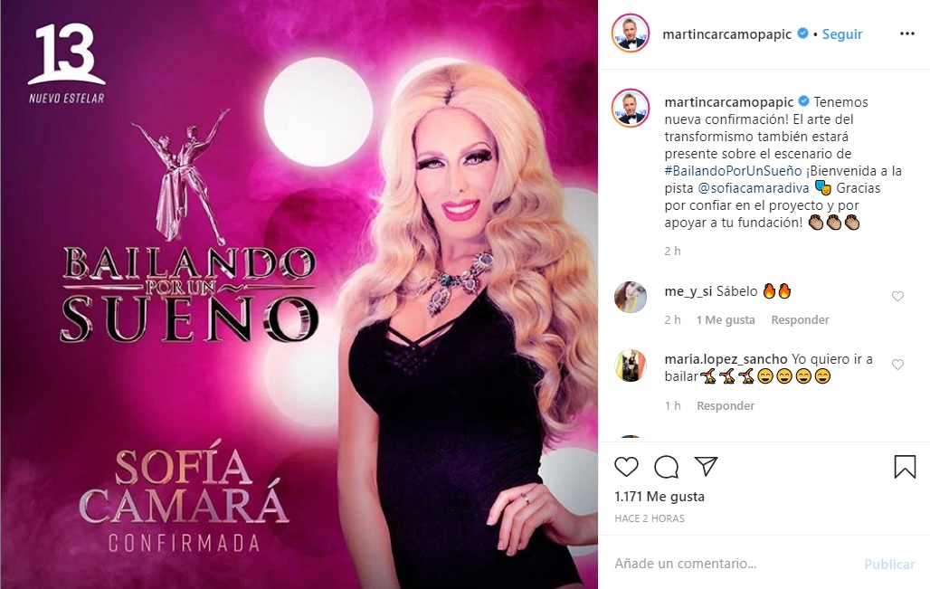 "¡Tenemos nueva confirmación! El arte del transformismo también estará presente sobre el escenario de #BailandoPorUnSueño ¡Bienvenida a la pista @sofiacamaradiva! Gracias por confiar en el proyecto y por apoyar a tu fundación", anunció Martín Cárcamo para confirmar a la nueva integrante.