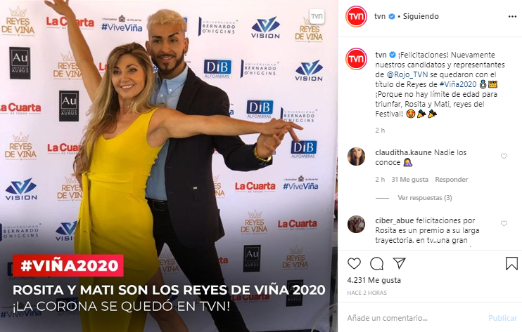 Ver esta publicación en Instagram¡Felicita a Rosita Piulats y Mati Falcón, Los nuevos reyes del Festival! #Viña2020 👑👑
