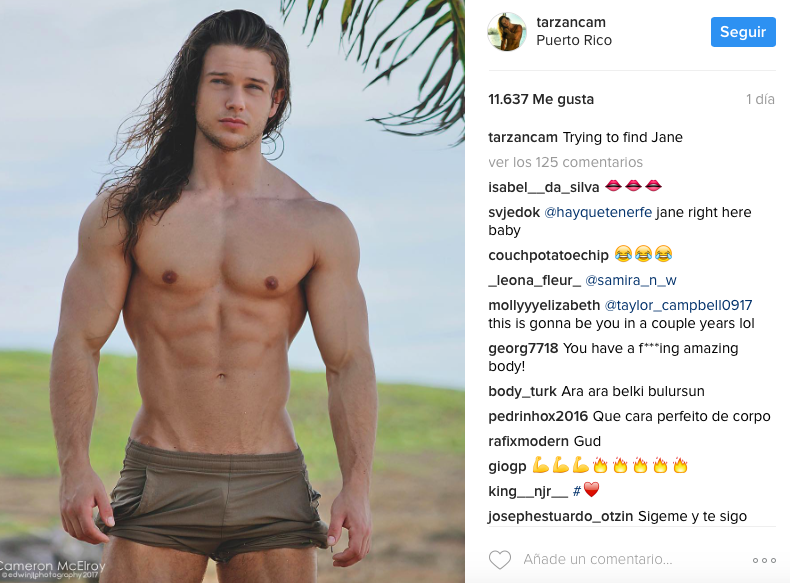 Su nombre es Cameron McElroy, es de Canadá y en las redes sociales ha sido nombrado como el Tarzán de carne y hueso, debido a su similitud con el personaje de Disney.