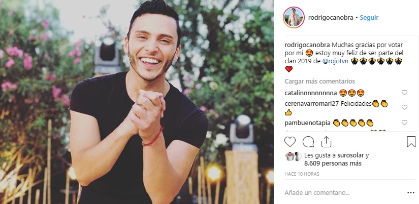 "Muchas gracias por votar por mí. Estoy muy feliz de ser parte del clan 2019 de Rojo", agradeció el joven a través de su cuenta en Instagram.