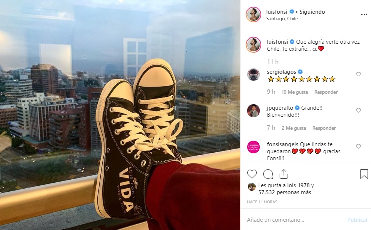 'Qué alegría verte otra vez Chile. Te extrañe...', escribió Luis Fonsi en su cuenta de Instagram desde su hotel.