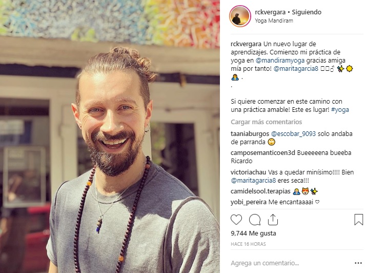"Un nuevo lugar de aprendizajes. Comienzo mi práctica de yoga en @mandiramyoga. Gracias amiga mía por tanto! @maritagarcia8 Si quiere comenzar en este camino con una práctica amable, éste es lugar!", escribió Ricardo en su red social.