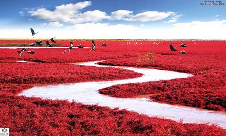 ¿Puedes creer que este lugar está en la tierra? Se ubica en China y su tono rojo se debe a una sal marina perteneciente a ese país. Sin embargo, entre abril y mayo cambia a su color natural verde.