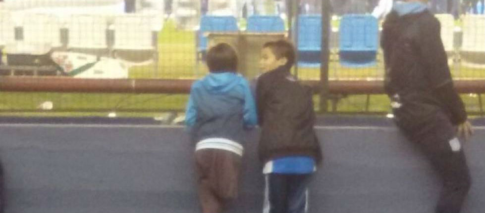 Hace un par de días comenzó a circular en redes sociales, una emotiva foto de dos niños viendo un partido de fútbol. La foto muestra a los pequeños cada uno arriba de una muleta para poder ver la cancha por encima de una pared de seguridad de 1,70 metros.