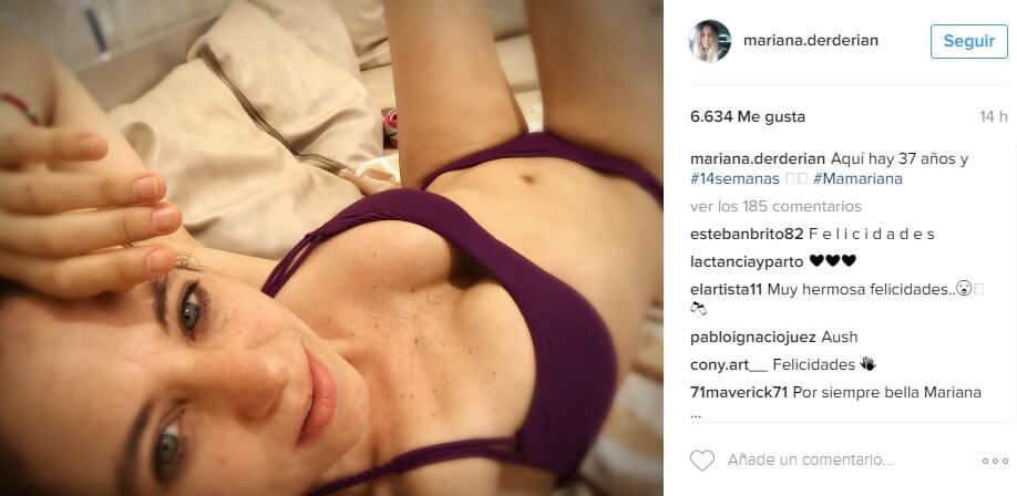 La rubia publicó una foto mostrando su guatita, junto a la frase "Aquí hay 37 años y #14semanas". Pero la noticia no sólo la dio a conocer a través de Instagram, porque ya lo había anunciado hace un par de días en su cuenta de Youtube Mamariana, donde habla de su experiencia de ser mamá.