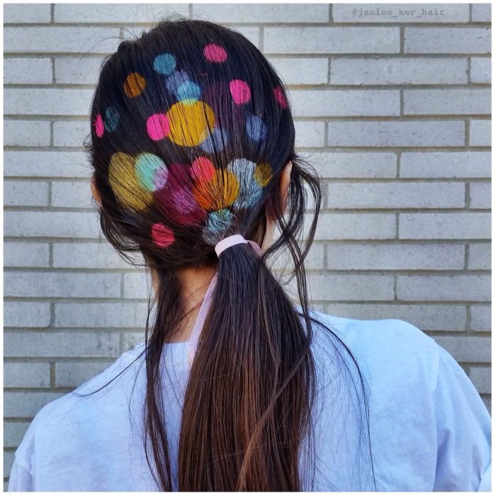 La estilista y artista Janine Ker creó estos sprays de pintura especiales para el pelo y laca, con los cuales logras que tu pelo tenga distintos diseños y muchos colores.