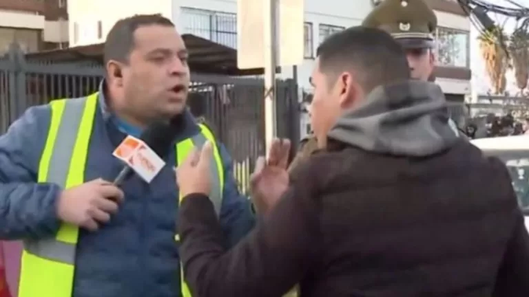 Sin embargo, cuando el periodista intentó responderle, el conductor golpeó el micrófono, lo que llevó a su detención en vivo por parte de Carabineros.