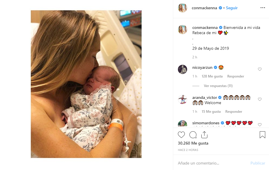 "Bienvenida a mi vida Rebeca de mi corazón ...29 de Mayo de 2019" fue lo que escribió Constanza Mackenna en su cuenta de Instagram, acompañada de la tierna foto.