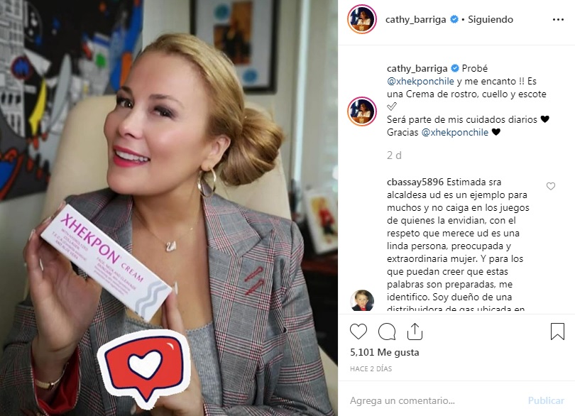 Por estos días la alcaldesa de Maipú Catherine Barriga volvió a protagonizar una polémica al compartir en su cuenta de Instagram una fotografía donde recomendaba una crema para el rostro y cuerpo.