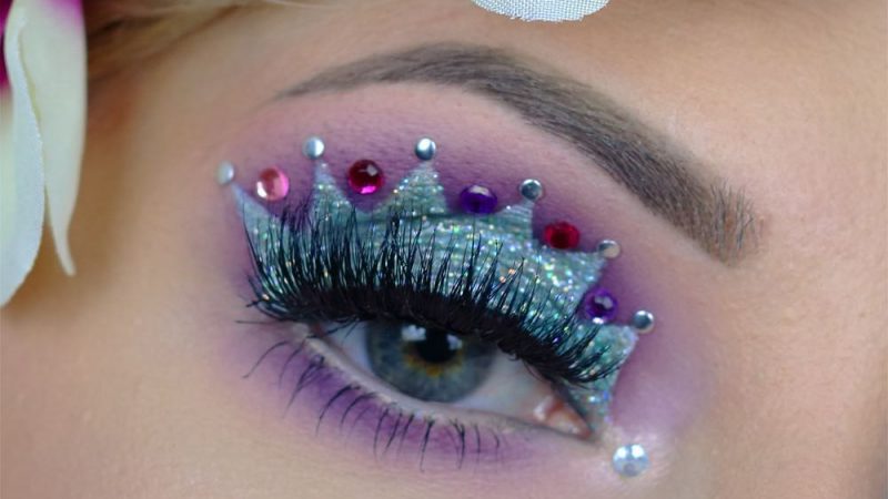Para tener el Crown makeup debes usar un stencil que te ayude a separar los distintos tonos de las sombras y así crear profundidad. Si no tienes un stencil, puedes dibujar la corona a mano pero para eso necesitas tener un buen pulso. Para los detalles puedes usar perlas, brillos, glitter o lo que se te ocurra.