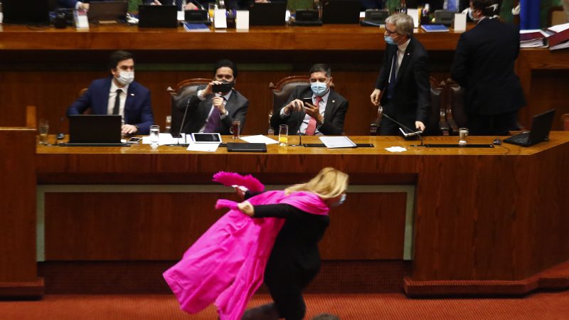 Tras la decisión, la diputada Pamela Jiles cumplió su promesa al parlamentario Felipe Macaya de 'celebrar a lo grande' si se aprobaba la medida. La 'abuela' bailó frente a los ministros del Gobierno, con una capa y plumas rosadas, siendo tendencia en redes sociales.