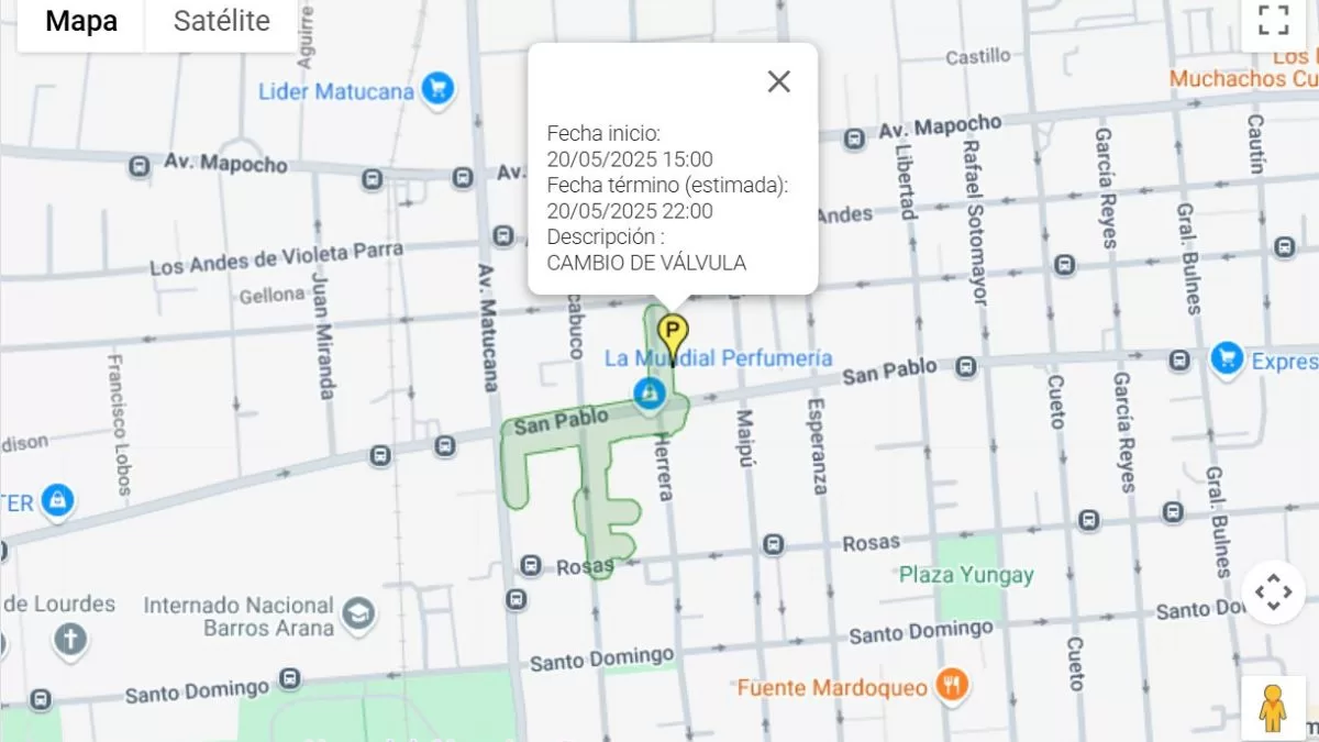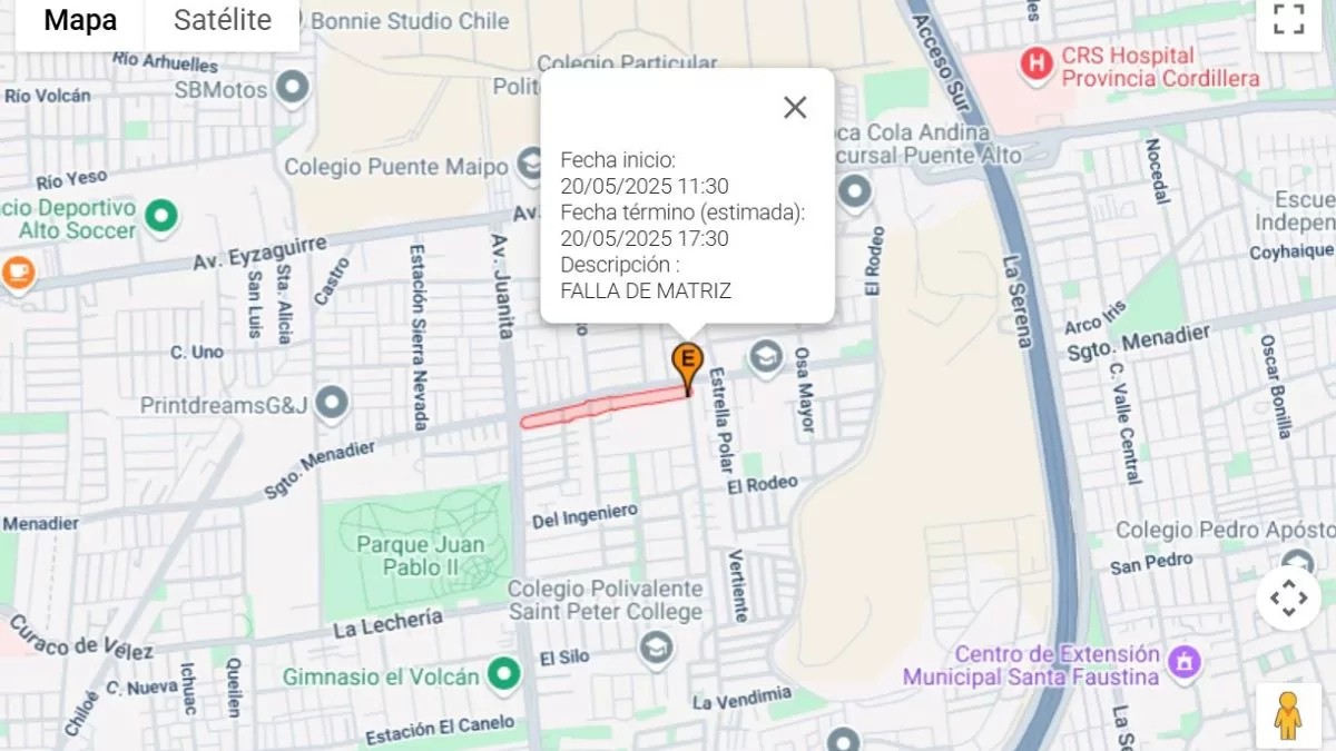 Desde Aguas Andinas dieron a conocer un mapa con las zonas de seis comunas de Santiago que se verán afectadas por el corte de agua este martes 20 de mayo.