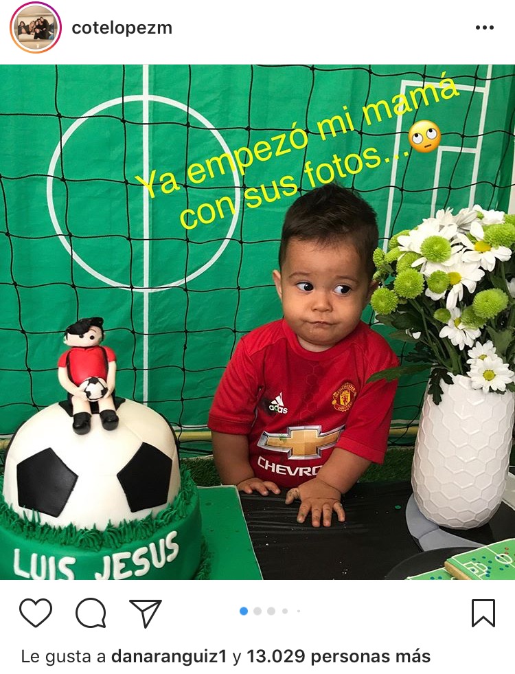 Junto con esa imagen, publicó una serie de fotografías de la celebración con el mensaje: "Un poquito del cumpleaños de mi príncipe para todas las que se sienten tías, hermanas, abuelas de mi gordo. Gracias por su cariño. PD: Faltó sólo el mejor amigo de mi bebé... mi Franquito... Lamentablemente no se pudo pero celebrarán en unos días".