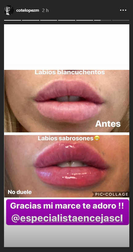 Finalmente, María José López mostró el resultado de su micropigmentación labial con una imagen comparativa donde se puede ver el tono de sus labios antes y después del procedimiento.