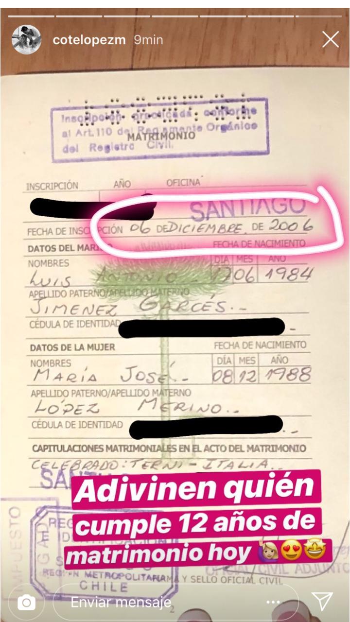 Si bien sus días son ajetreados, la modelo compartió con sus más de 1 millón de seguidores su libreta de matrimonio, conmemorando los 12 años de casados junto al "Mago".