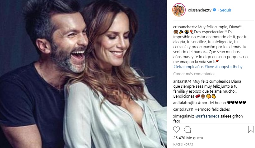 "Muy feliz cumple, Diana!!! Eres espectacular!!! Es imposible no estar enamorado de ti, por tu alegría, tu sencillez, tu inteligencia, tu cercanía y preocupación por los demás, tu sentido del humor... Que sean muchos años más, y te lo digo en serio porque no me imagino la vida sin ti", escribió Cristián para acompañar una imagen de los dos.